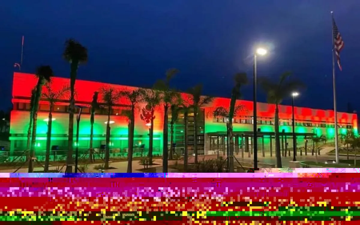 L’ambassade des États-Unis d’Amérique aux couleurs du drapeau marocain