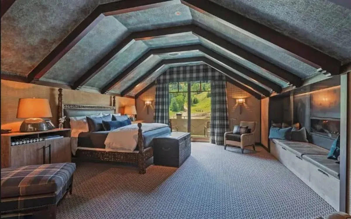 Conçue par le décorateur d’intérieur américain Patrick Sutton, cette maison a tout pour plaire ou pour y vivre à l’aise. On y trouve cinq chambres, sept salles de bains, des bois rustiques, des cuirs personnalisés, de l’onyx scintillant, des pierres brutes et des textiles indigènes pour capturer le romantisme et la robustesse de l’ère des mines d’argent. Dans la suite Mammoth, on trouve une salle de jeux, un bar bien aménagé enveloppé de carreaux de miroir antiques, de pierre taillée au laser et de cuir vert capitonné, un contraste de rustique et de raffinement.