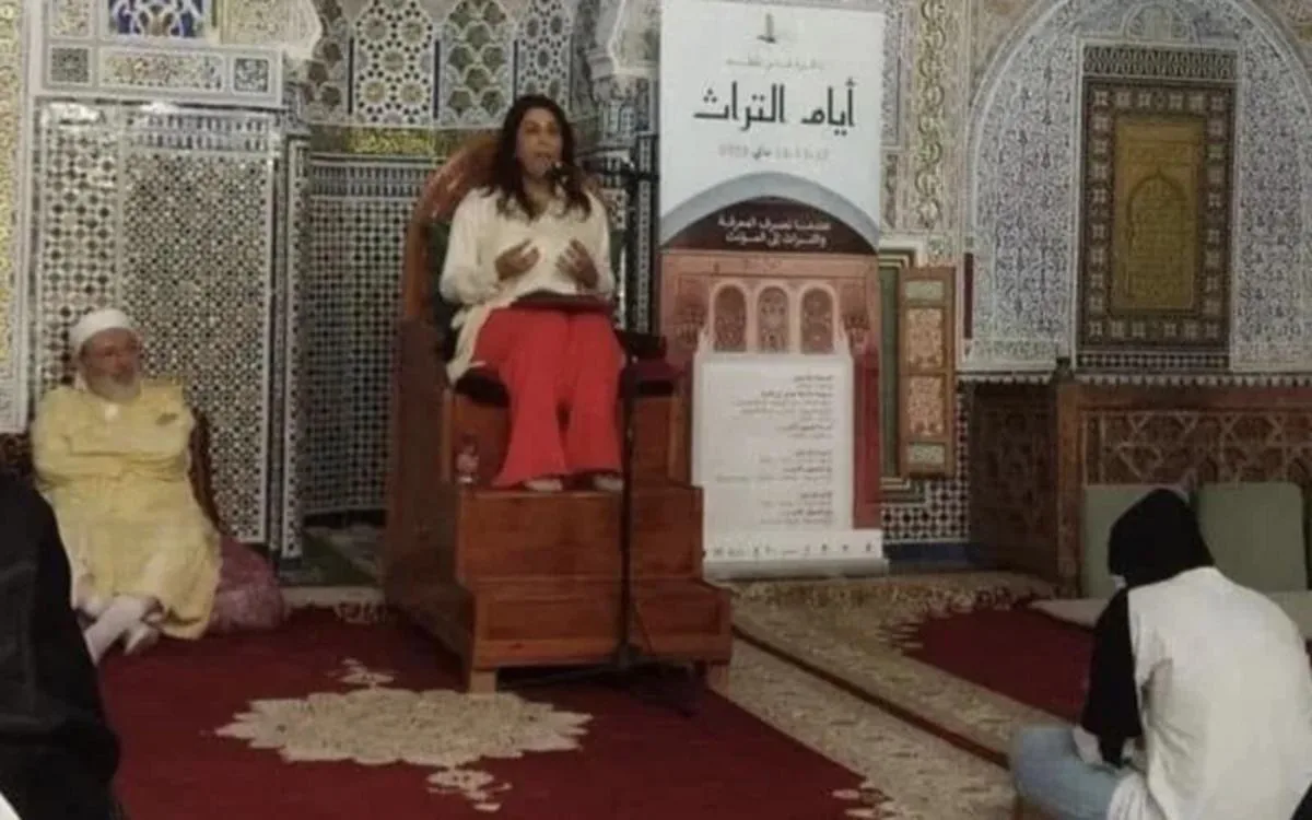 Dans cette image publiée sur les réseaux sociaux ce lundi, des internautes marocains affirment que la professeure d’architecture à l’université s’est assise sur un Minbar – la chaire à partir de laquelle le sermon (khutbah) est prononcé – sans porter de voile. Choqués, ils accusent l’enseignante de ne pas respecter le caractère sacré de l’établissement religieux. Mais ce qu’ils ont vu est loin d’être la réalité.