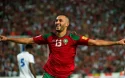 Khalid Boutaib est l’auteur du triplé lors du match qui a opposé hier les Lions de l’Atlas...