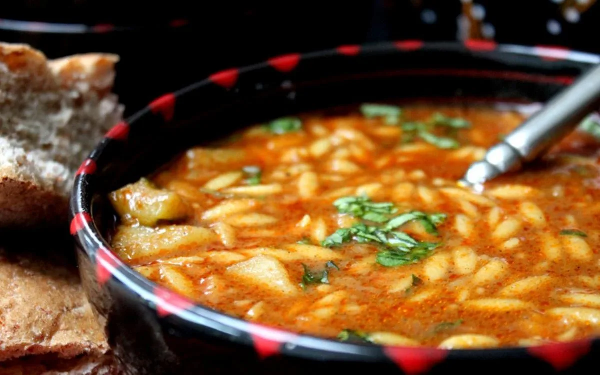 Porter à ébullition et laisser sur feu doux 20 min. Ajouter les pâtes et le concentré de tomates. Laisser cuire 20 min en remuant de temps en temps. Rectifier l’assaisonnement si besoin et servir chaud.