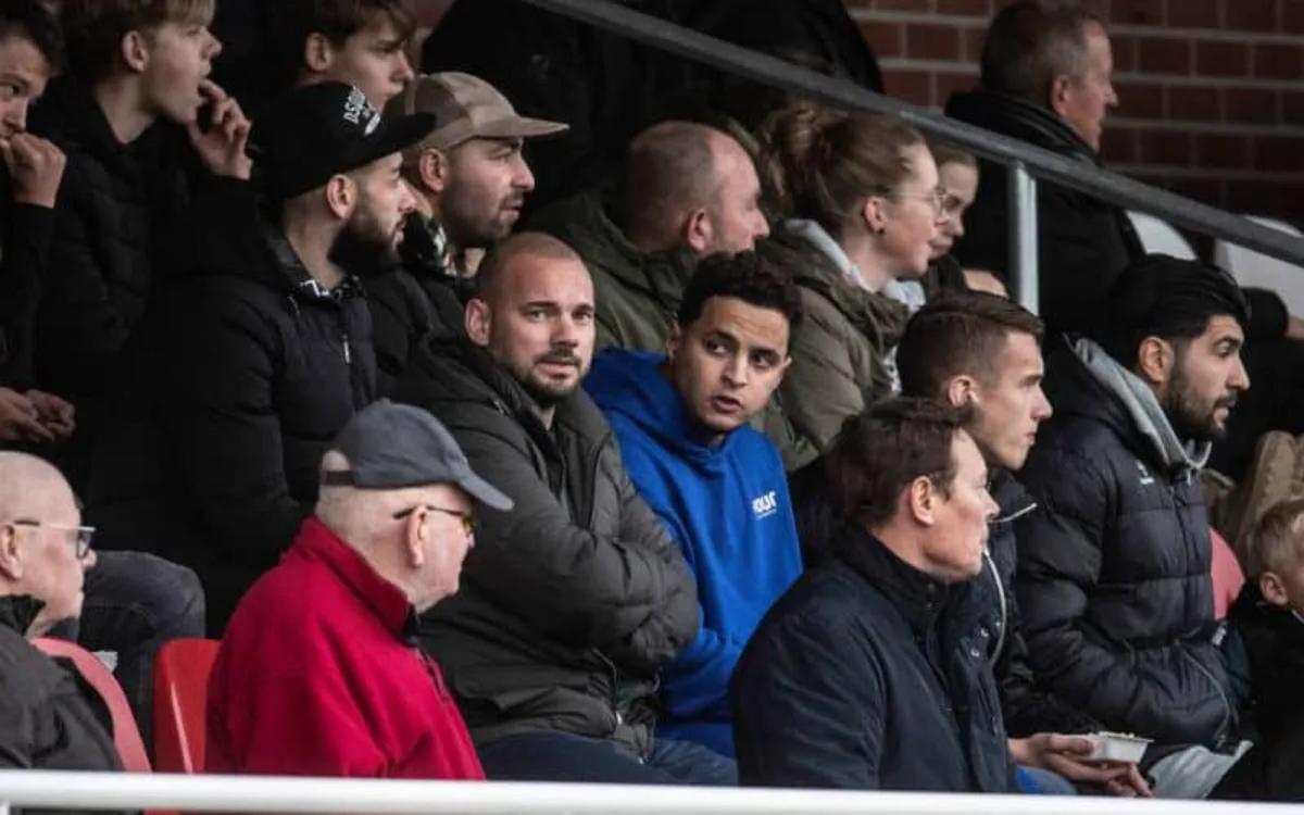 Le Néerlandais Wesley Sneijer, ancien pensionnaire de DHSC d’Utrecht et le joueur d’origine marocaine Mohamed Ihattaren prêté par l’Ajax, ont suivi ensemble samedi depuis les tribunes le match entre l’AZSV d’Aalten et le DHSC.