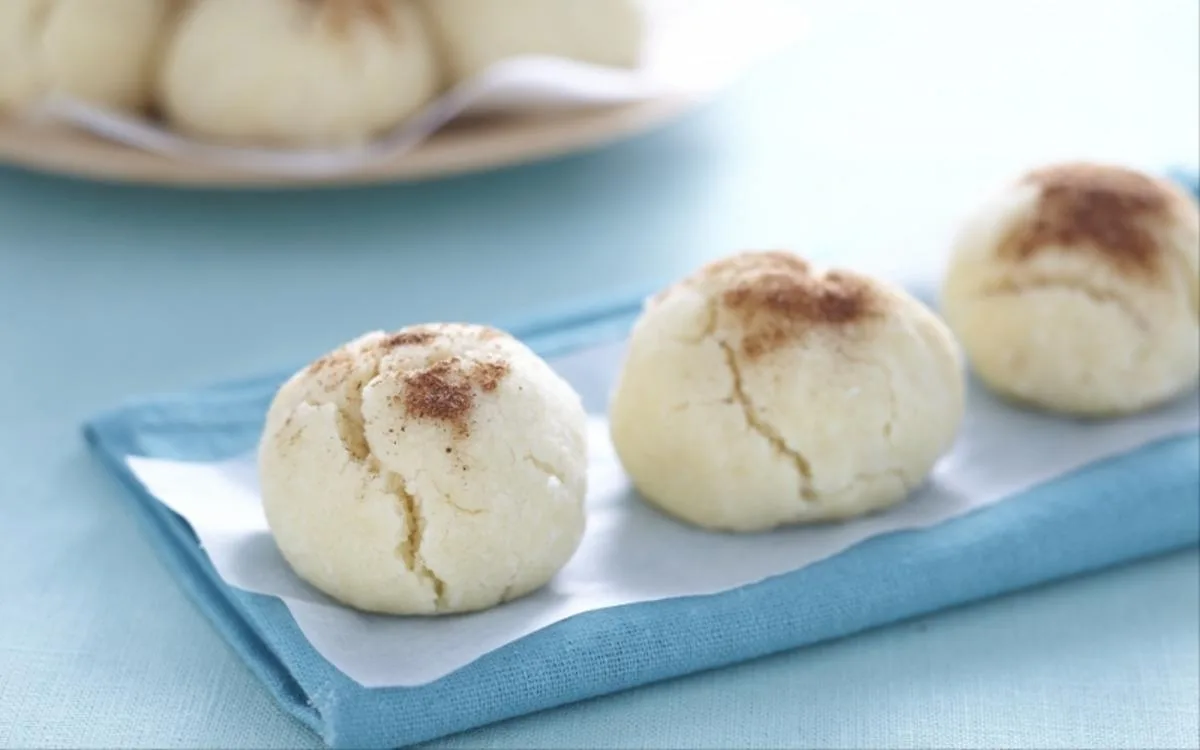 Grillez les cacahuètes à sec dans une poêle, hachez-les finement en utilisant un robot de cuisine, jusqu’à ce qu’elles soient réduites en pâte. Mélangez cette pâte avec le sucre, les épices et l’huile. Mélangez la levure et la farine et incorporez au mélange précédent en travaillant la pâte pour obtenir un appareil assez ferme et homogène. Préchauffez le four th.7 (210°C). Formez des petites boules de pâte de la taille d’un 1/2 oeuf. Déposez-les sur une plaque à pâtisserie garnie de papier sulfurisé. Mettez au four pour 45 min. Lorsque les boules auront légèrement bruni et que la surface se sera fendillée, vérifiez la cuisson en soulevant une des boules. Si la base est brunâtre, retirez du four et laissez refroidir sur la plaque. Saupoudrez de sucre glace et de cannelle. Ces gâteux fragiles peuvent se conserver quelques jours dans une boite hermétique.