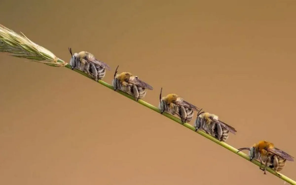 La photo de Frank Deschandol primée dans la catégorie insecte a été prise dans l’Atlas marocain. Elle met en avant des abeilles sauvages qui dorment sur une tige. Selon le photographe animalier, c’est le comportement des insectes qui l’a incité à les prendre en photo. "Le comportement est intéressant, elles sont marrantes, elles se fixent et s’accrochent avec leurs mandibules. C’est le comportement qu’elles ont juste avant le coucher de soleil pour dormir ensemble", a-t-il laissé entendre.