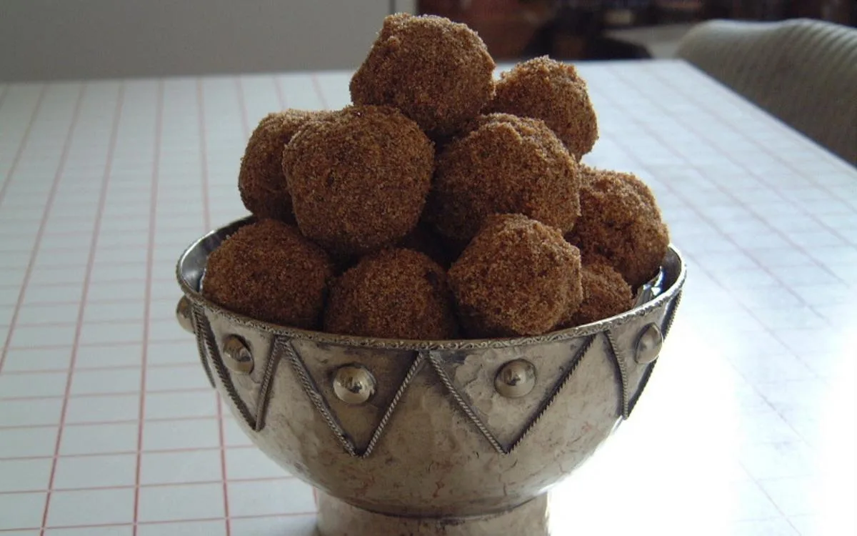 Mélanger à chaud la semoule grillée et le mélange beurre-dattes, et en faire des boules (taille d’un oeuf).