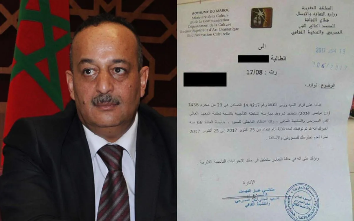 Une étudiante aurait été suspendue par la direction de l’Institut supérieur d’art dramatique pour ne pas s’être levée au passage du ministre de la Culture et de la Communication, Mohamed Laâraj.