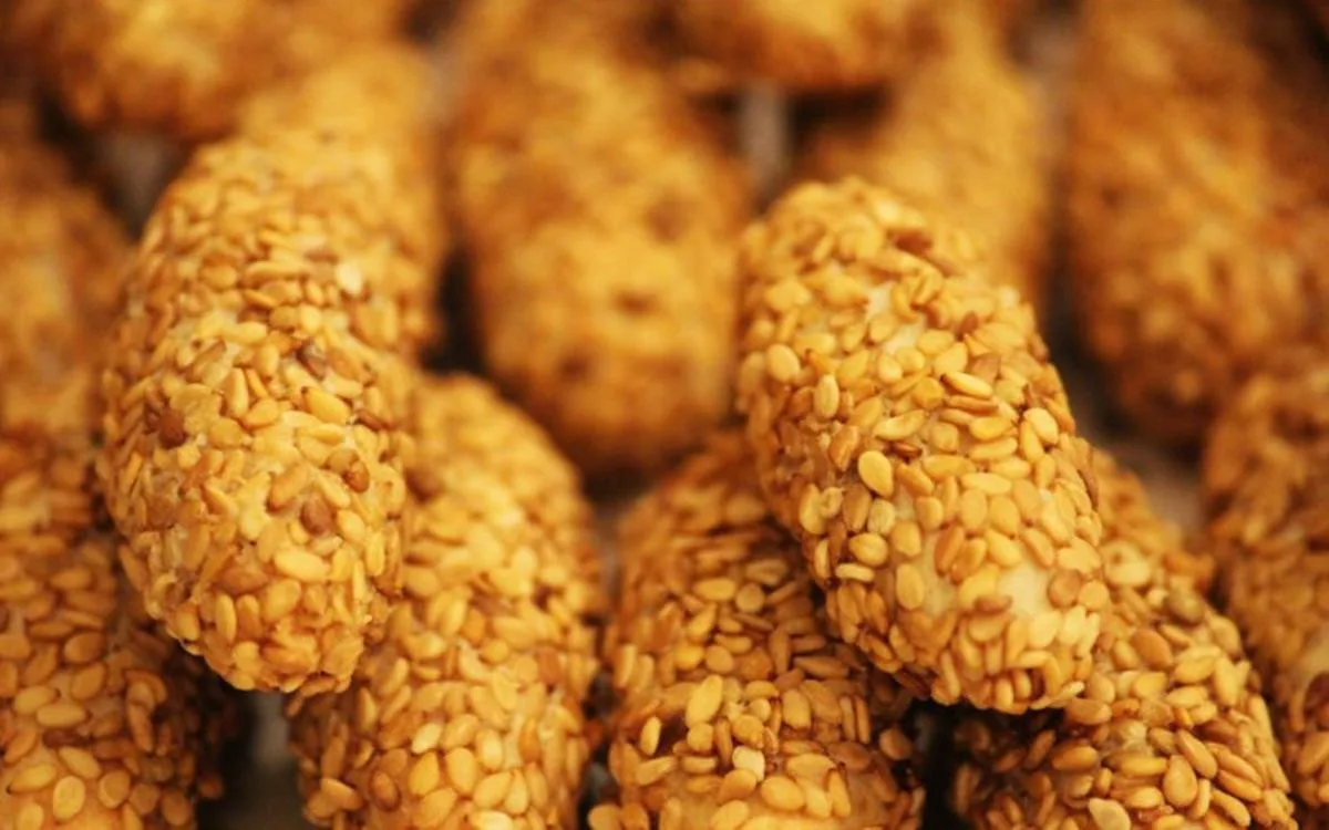 Laver, égoutter et griller les grains de sésame dans une poêle en remuant constamment. Emonder et faire frire les amandes à l’huile. Mélanger amandes, graines de sésame et sucre en poudre et passer au hache-viande une fois, puis ajouter la gomme arabique pilée, la cannelle et l’anis pilé.